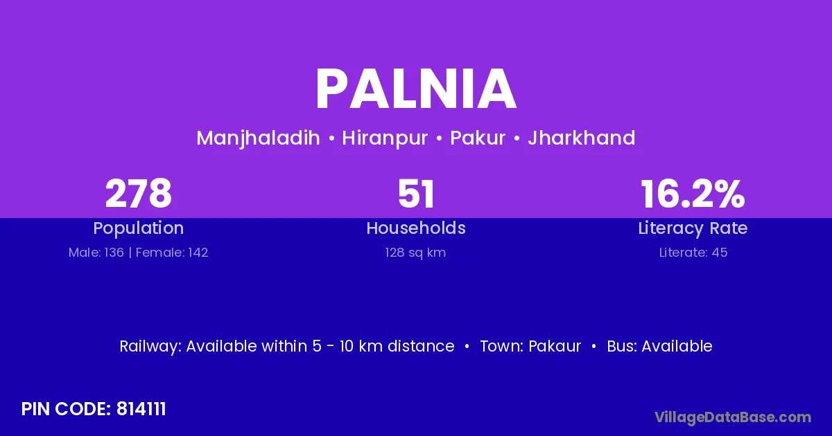 Pakaur is the nearest town to Palnia village for major economic activities