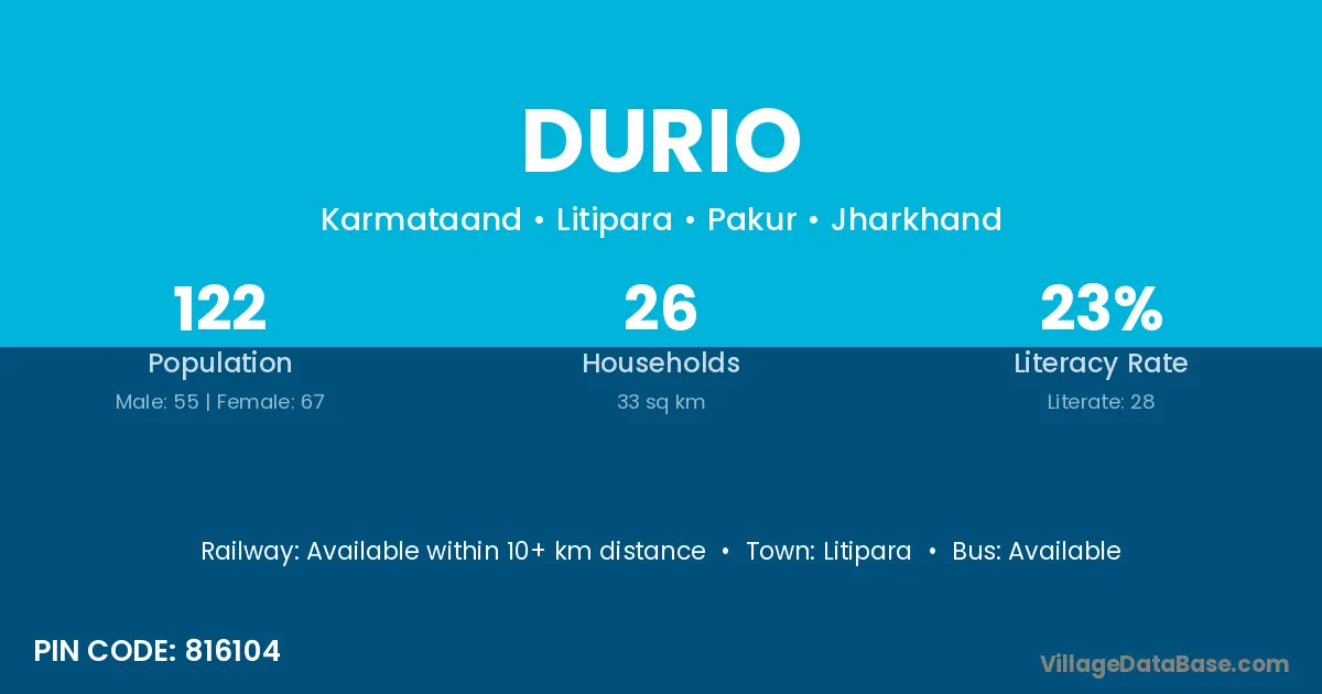 Durio village is located in the Litipara Subdivision of the Pakur district in Jharkhand .