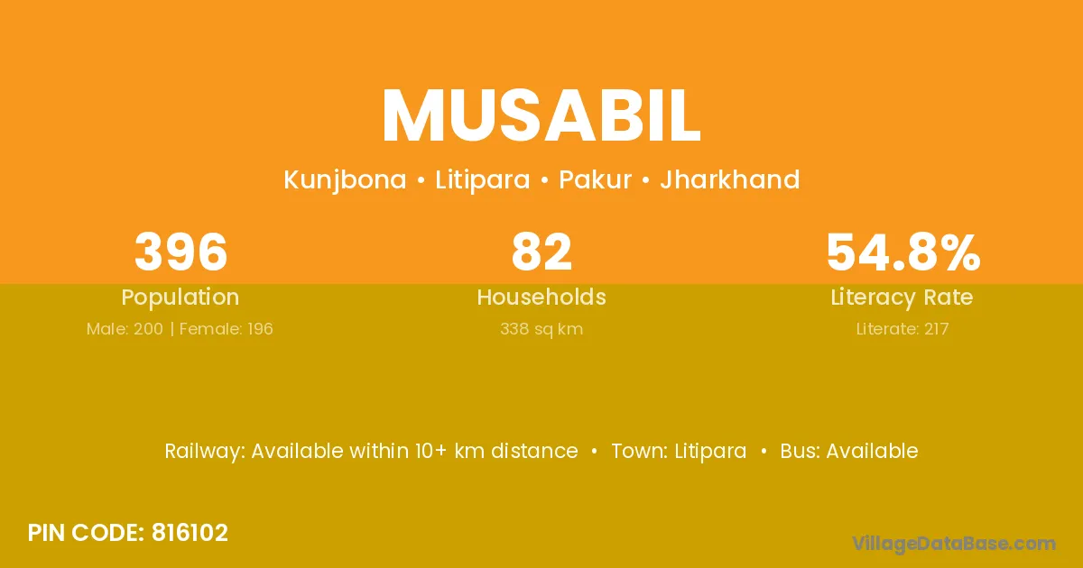 Musabil village has a total population of 396 people, of which 200 are males and 196 are females.