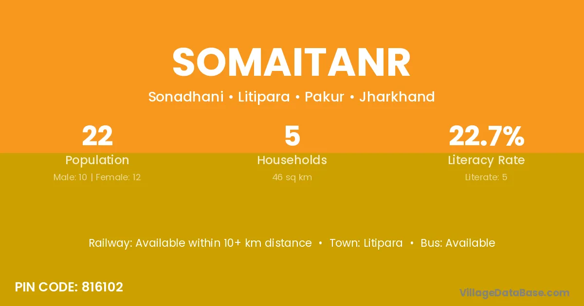 Somaitanr village has a total population of 22 people, of which 10 are males and 12 are females.