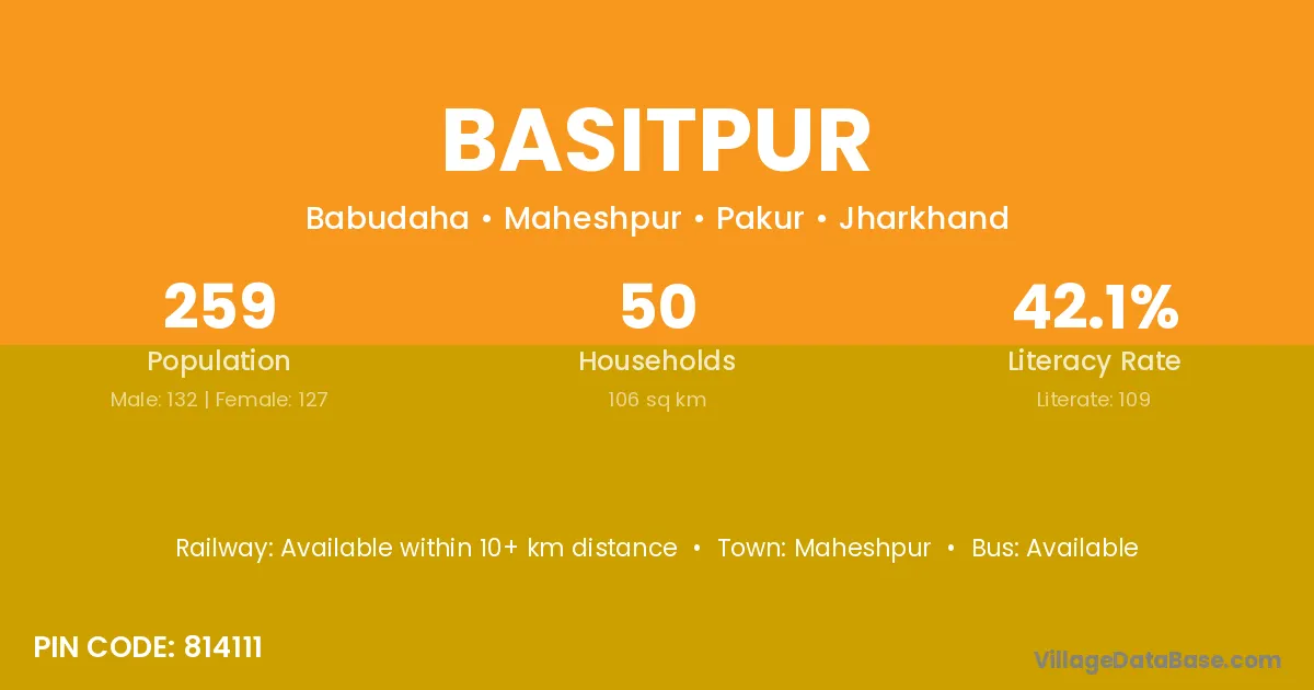Basitpur village has a total population of 259 people, of which 132 are males and 127 are females.