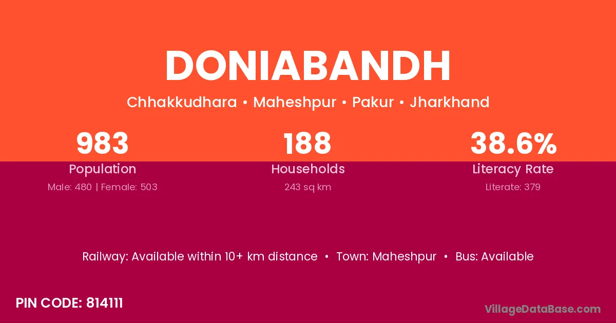 Doniabandh village has a total population of 983 people, of which 480 are males and 503 are females.