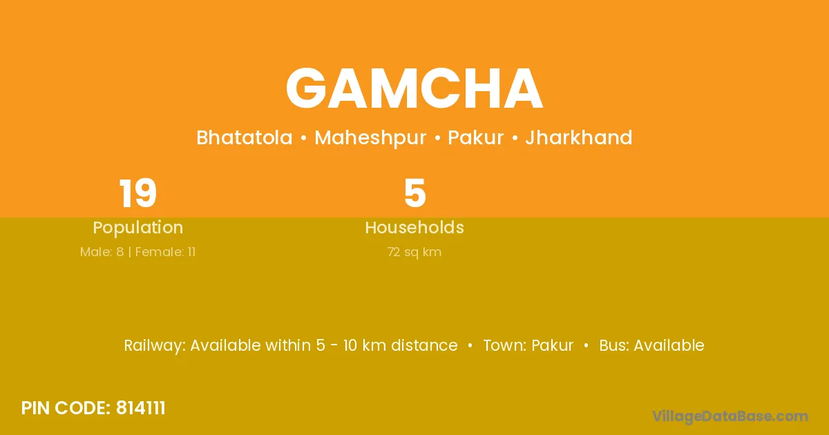 Gamcha village has a total population of 19 people, of which 8 are males and 11 are females.
