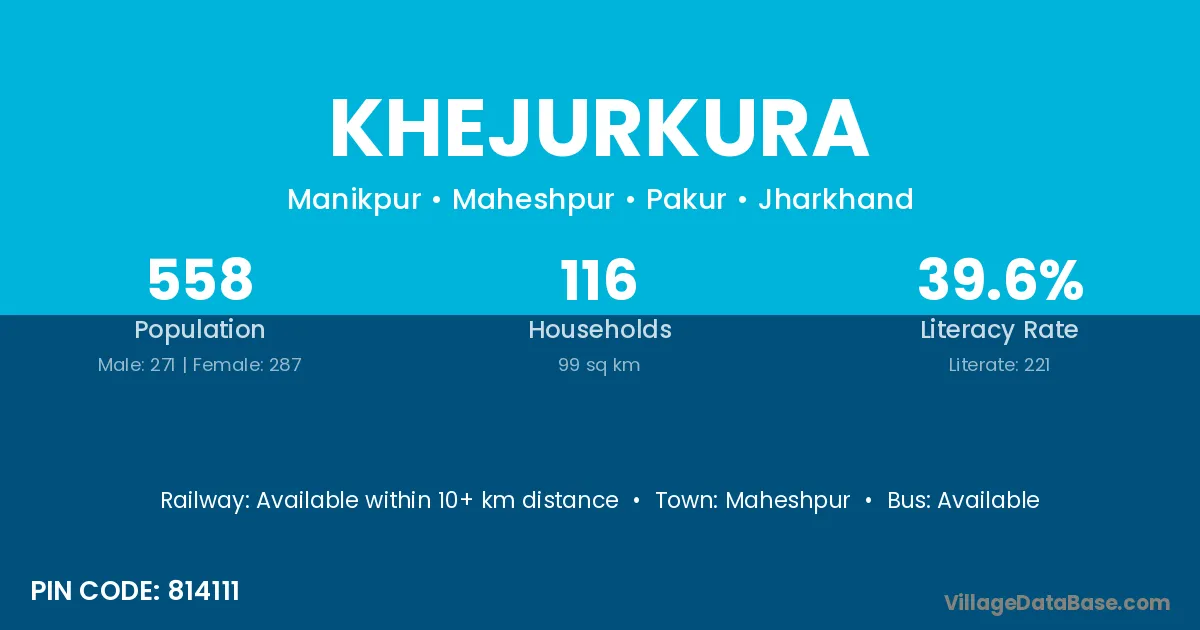 Khejurkura village has a total population of 558 people, of which 271 are males and 287 are females.
