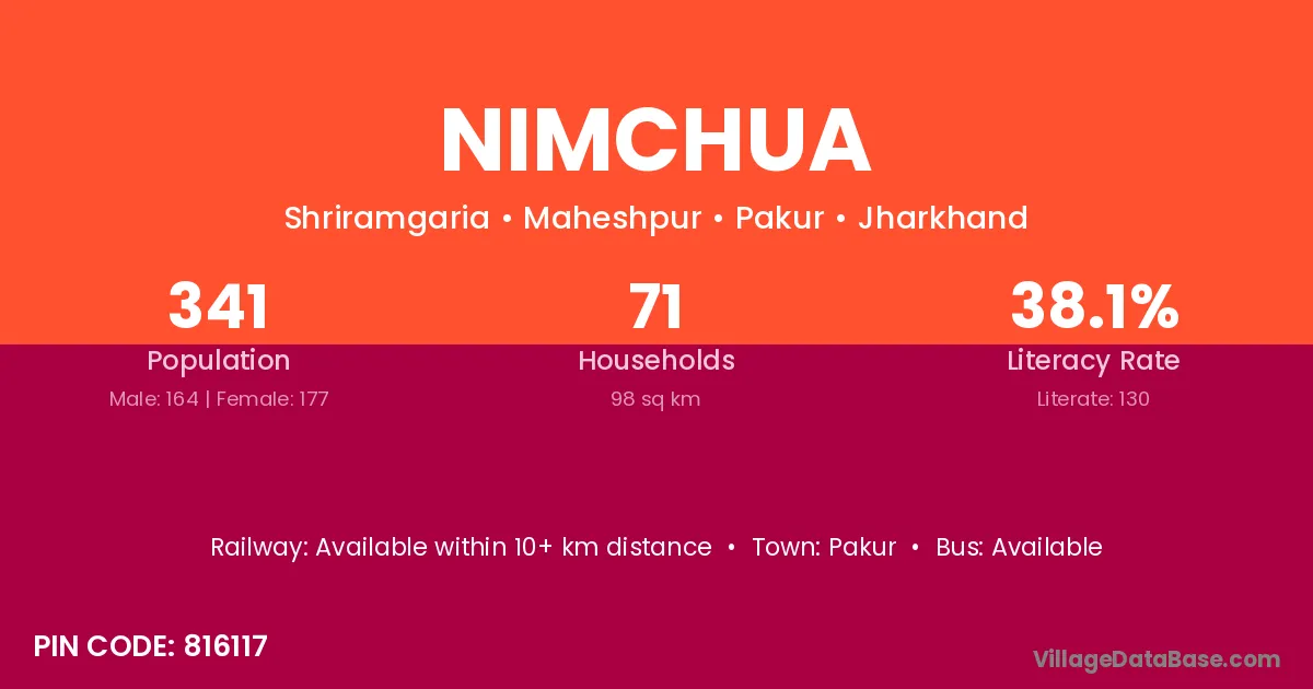 Nimchua village has a total population of 341 people, of which 164 are males and 177 are females.