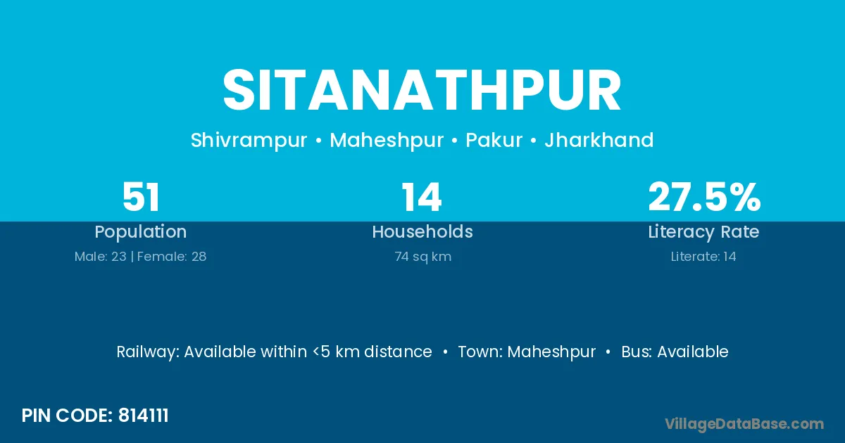 Sitanathpur village has a total population of 51 people, of which 23 are males and 28 are females.