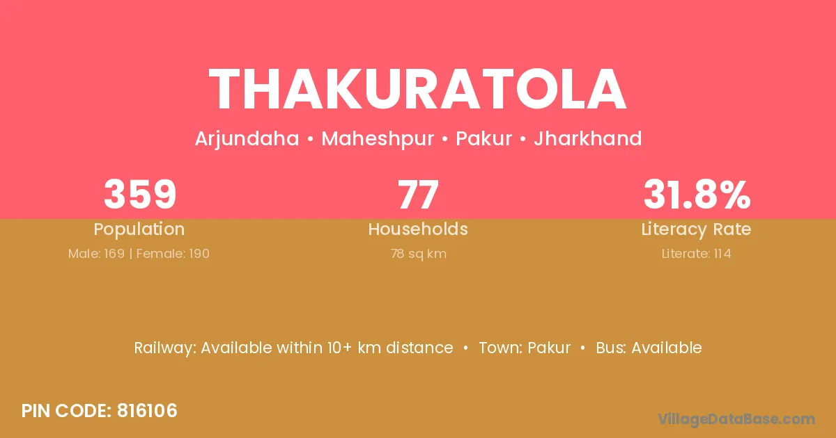 Thakuratola village has a total population of 359 people, of which 169 are males and 190 are females.