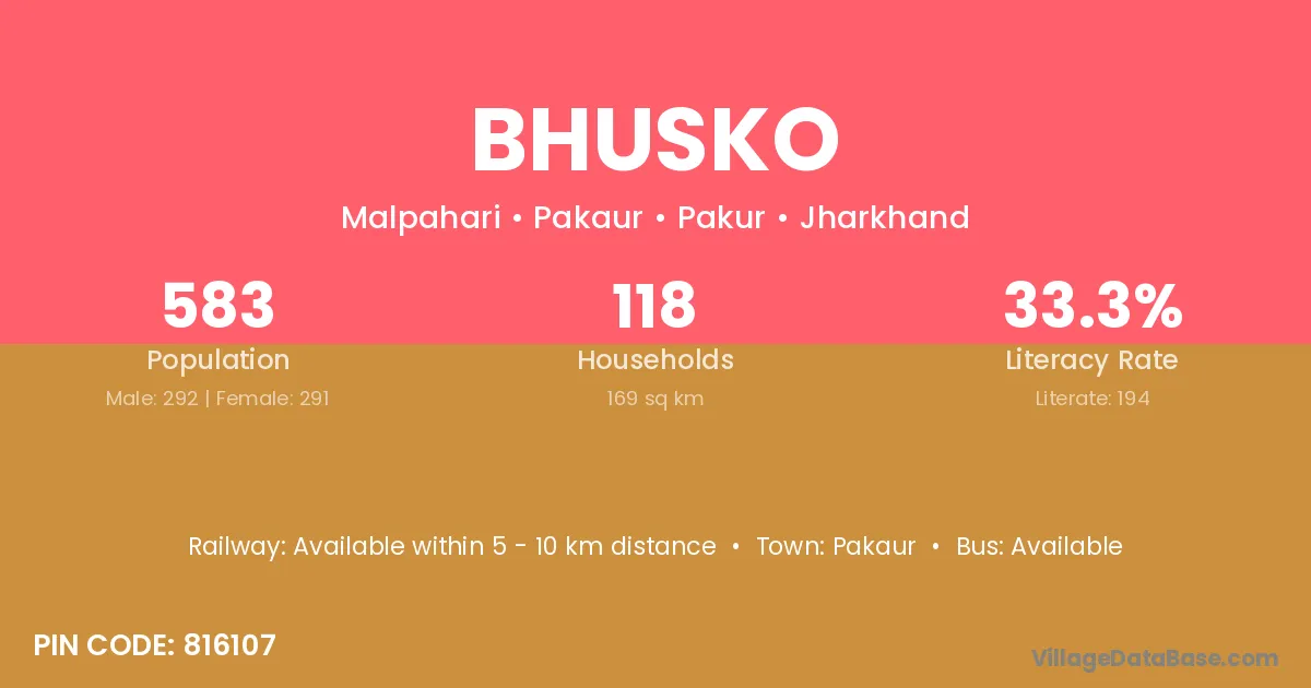 Pakaur is the nearest town to Bhusko village for major economic activities