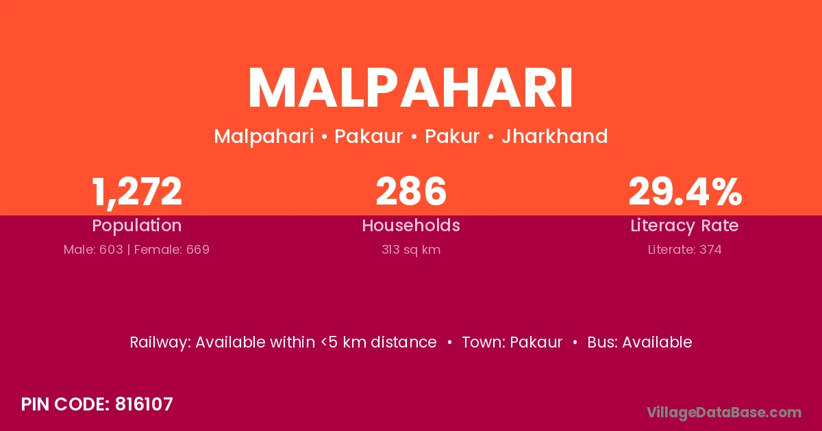 Pakaur is the nearest town to Malpahari village for major economic activities