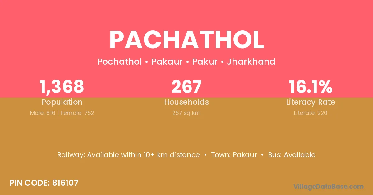 Pakaur is the nearest town to Pachathol village for major economic activities