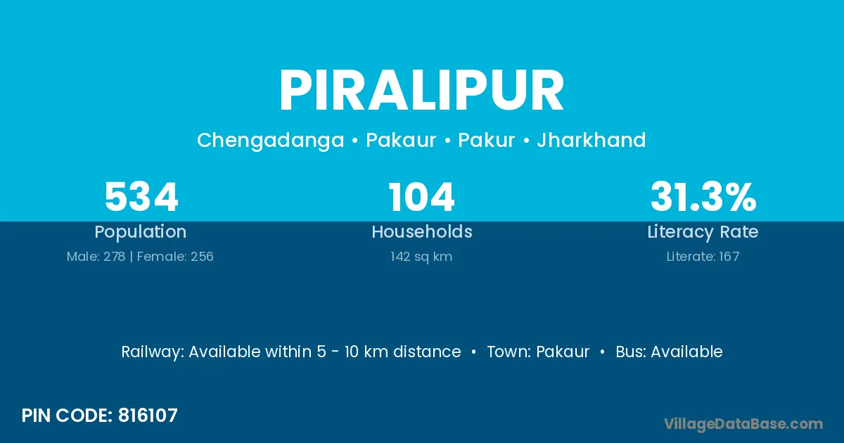 Pakaur is the nearest town to Piralipur village for major economic activities
