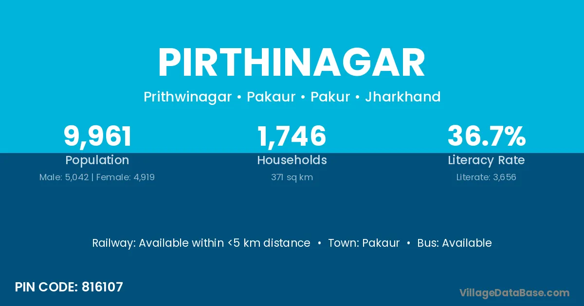 Pakaur is the nearest town to Pirthinagar village for major economic activities