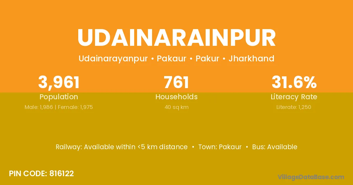Pakaur is the nearest town to Udainarainpur village for major economic activities