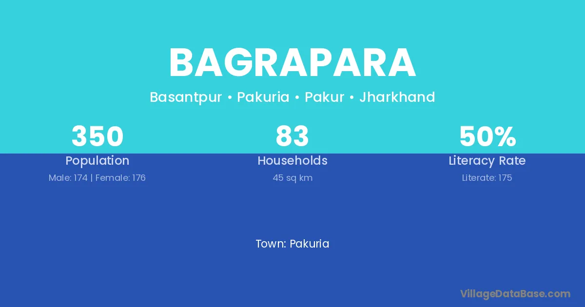 Bagrapara village has a total population of 350 people, of which 174 are males and 176 are females.