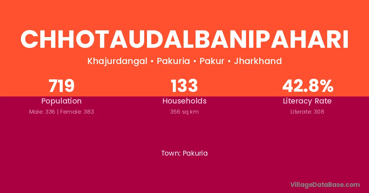 Chhotaudalbanipahari village has a total population of 719 people, of which 336 are males and 383 are females.