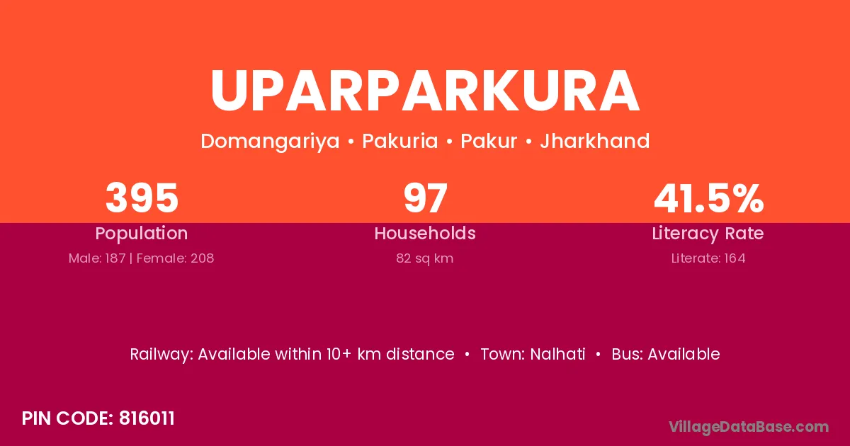 Uparparkura village has a total population of 395 people, of which 187 are males and 208 are females.