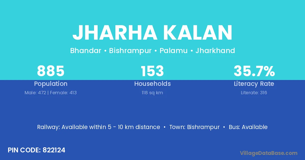 Bishrampur is the nearest town to Jharha Kalan village for major economic activities