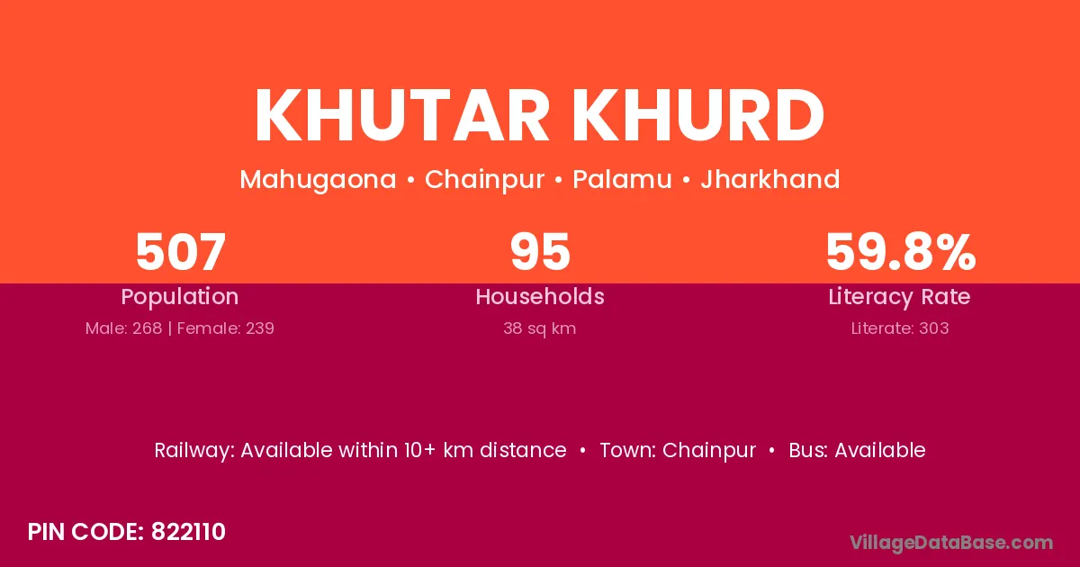 Khutar Khurd village has a total population of 507 people, of which 268 are males and 239 are females.