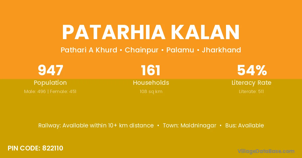 Patarhia Kalan village has a total population of 947 people, of which 496 are males and 451 are females.