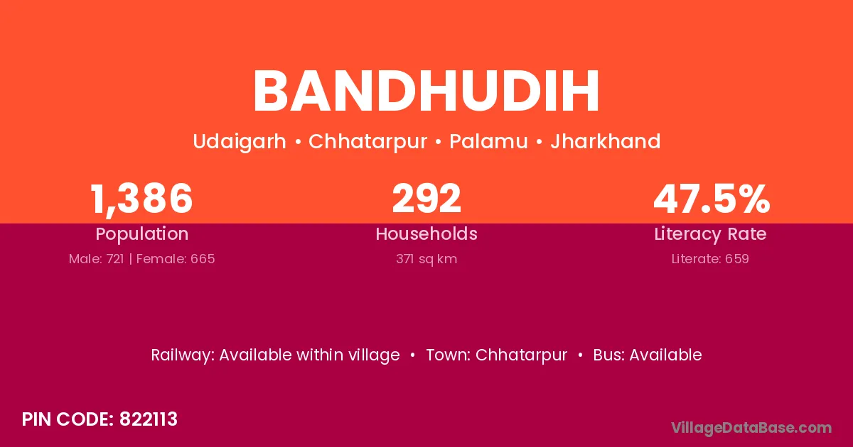 Bandhudih village has a total population of 1,386 people, of which 721 are males and 665 are females.