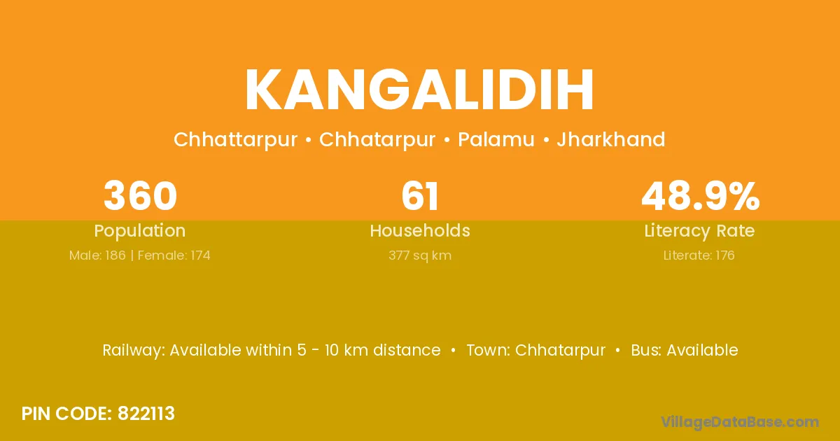Kangalidih village has a total population of 360 people, of which 186 are males and 174 are females.