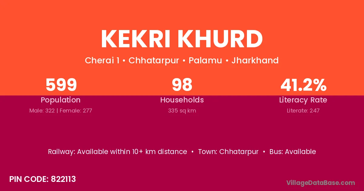 Kekri Khurd village is located in the Chhatarpur Subdivision of the Palamu district in Jharkhand .