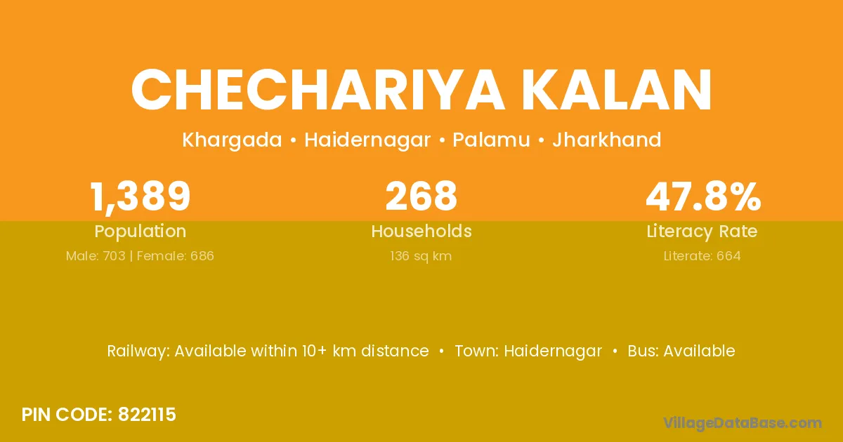 Chechariya Kalan village is located in the Haidernagar Subdivision of the Palamu district in Jharkhand .