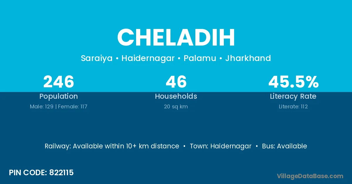 According to Census 2011 information, the village code of Cheladih village is 822115.