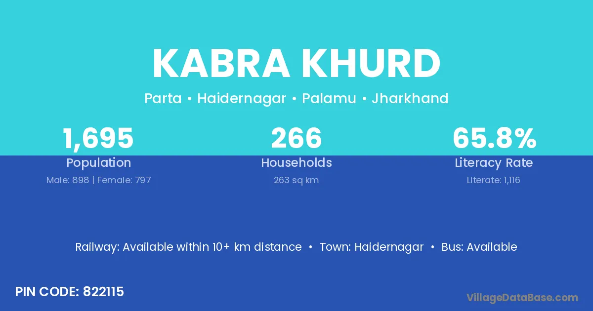 Kabra Khurd village has a total population of 1,695 people, of which 898 are males and 797 are females.