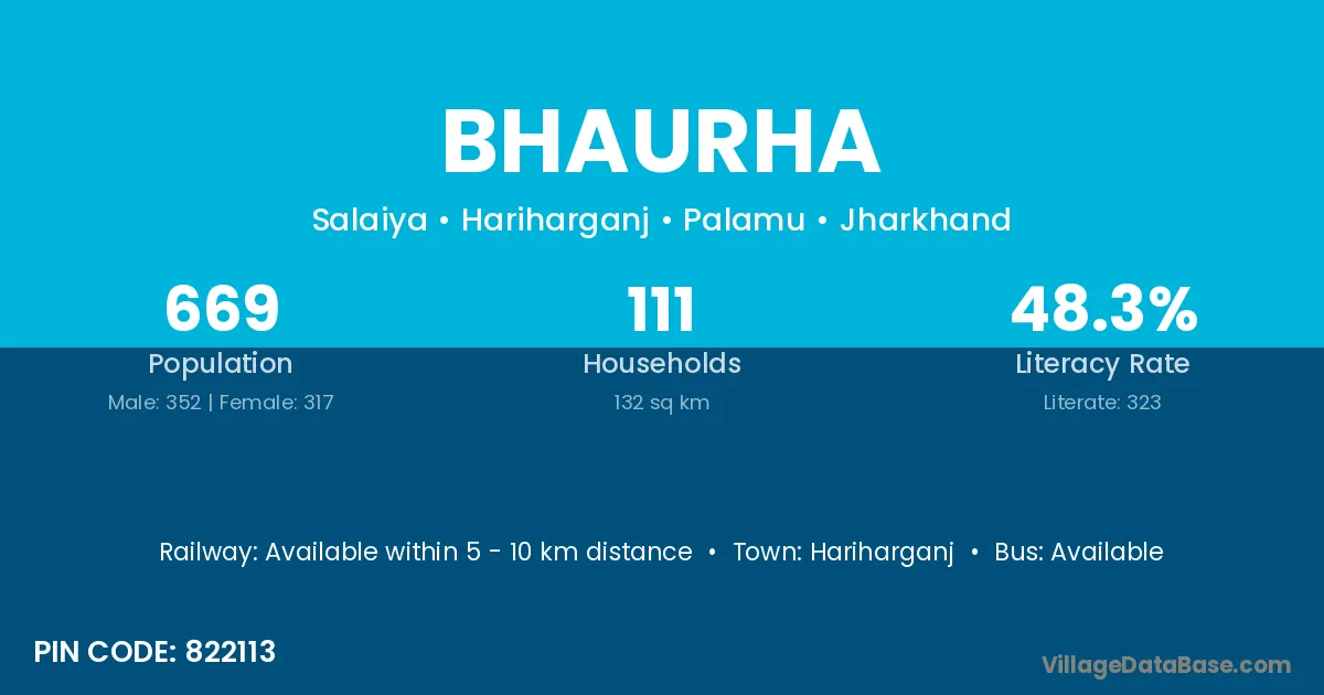 Bhaurha village is located in the Hariharganj Subdivision of the Palamu district in Jharkhand .