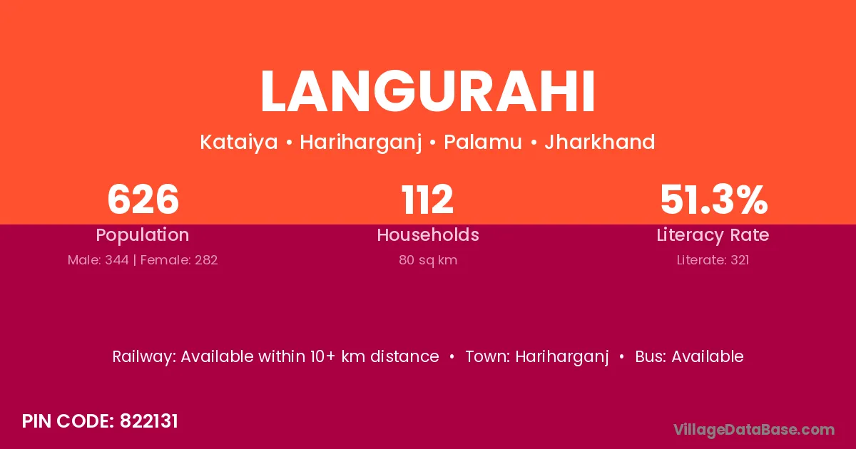 The literacy rate of Langurahi village is 51.28%. Male literacy stands at 61.92% and female literacy at 38.30%.