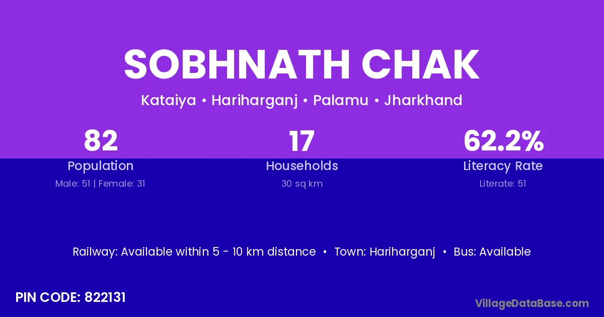 Sobhnath Chak village has a total population of 82 people, of which 51 are males and 31 are females.
