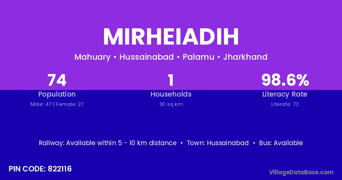 Hussainabad is the nearest town to Mirheiadih village for major economic activities