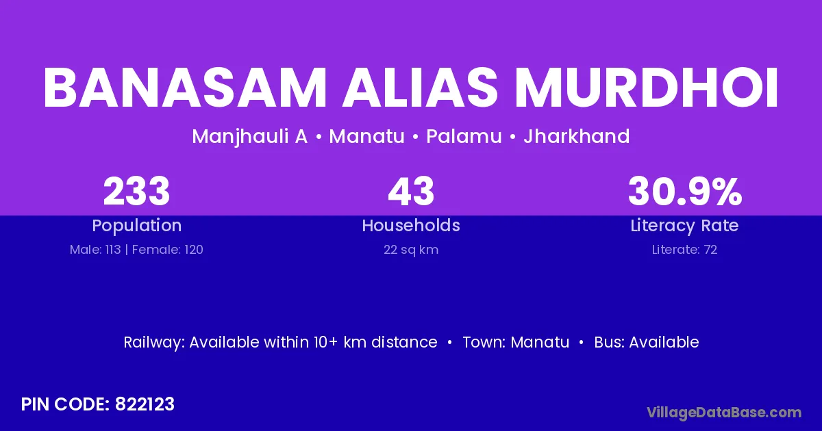 Banasam Alias Murdhoi village is located in the Manatu Subdivision of the Palamu district in Jharkhand .