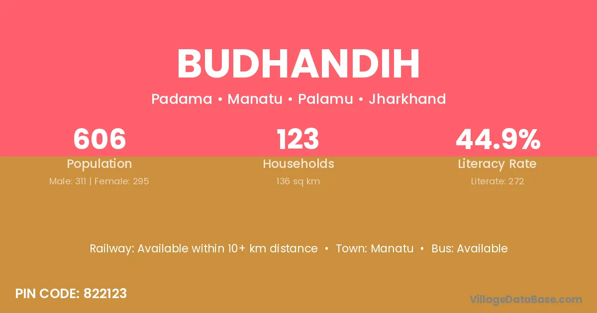 Budhandih village has a total population of 606 people, of which 311 are males and 295 are females.