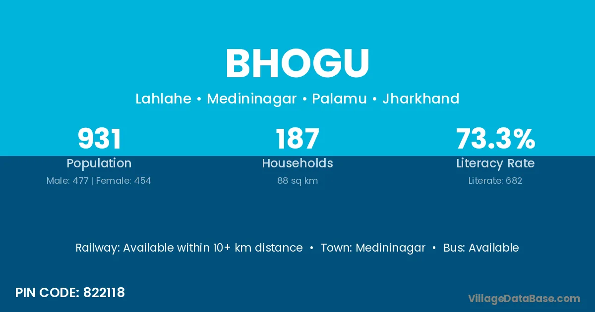 Bhogu village is located in the Medininagar Subdivision of the Palamu district in Jharkhand .