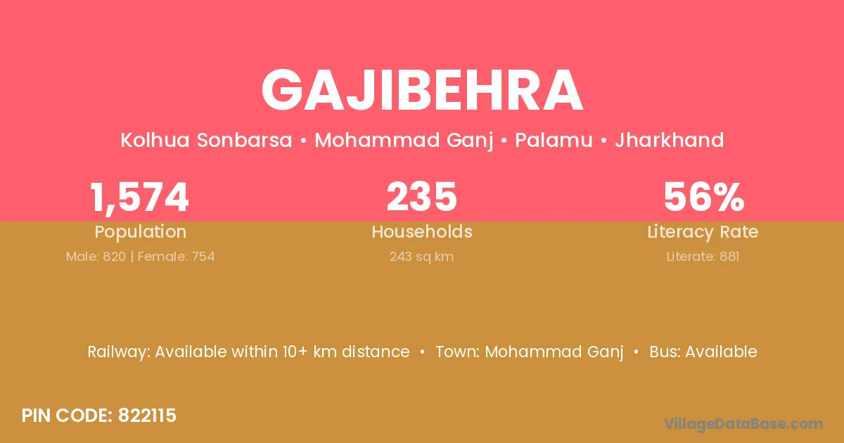 According to Census 2011 information, the village code of Gajibehra village is 822115.