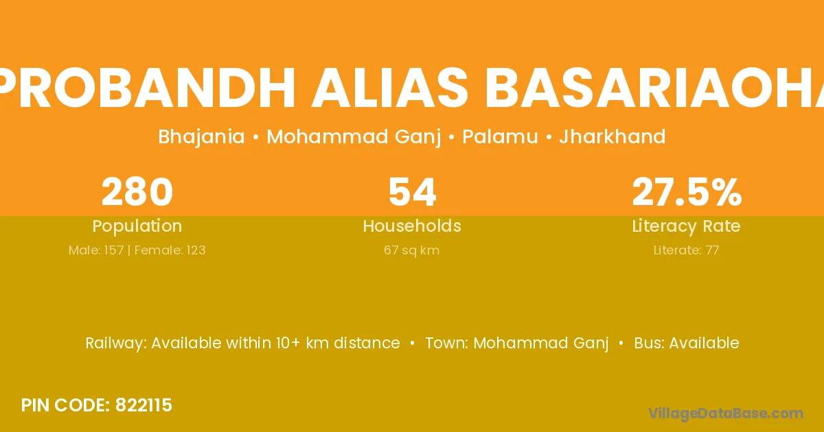 Piprobandh Alias Basariaohar village has a total population of 280 people, of which 157 are males and 123 are females.