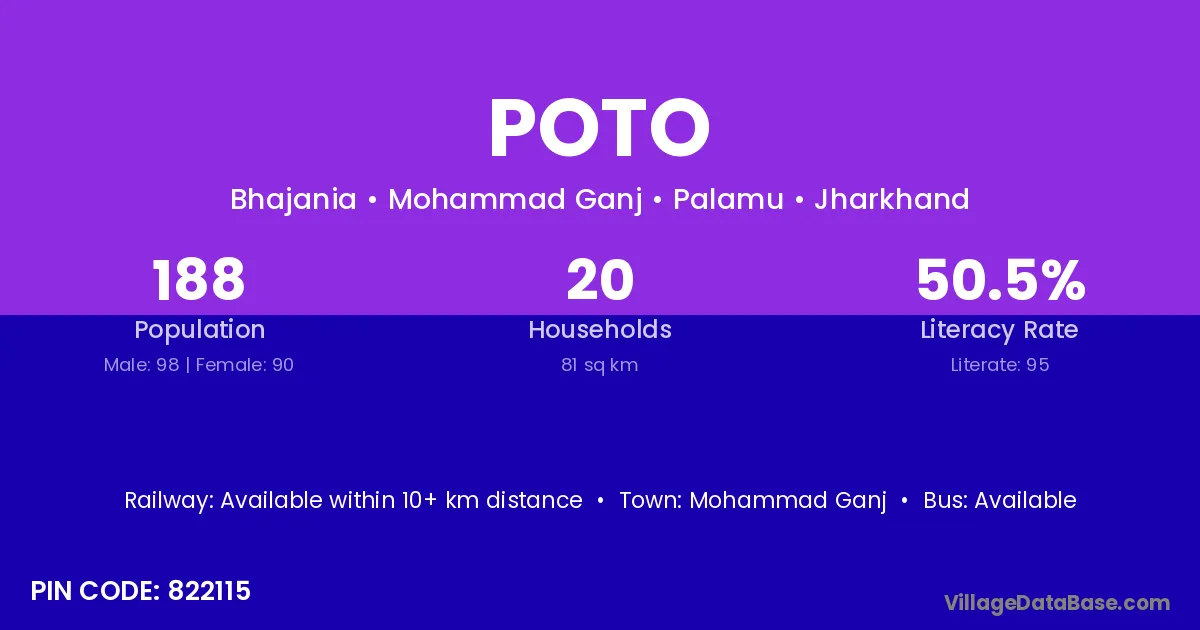 According to Census 2011 information, the village code of Poto village is 822115.