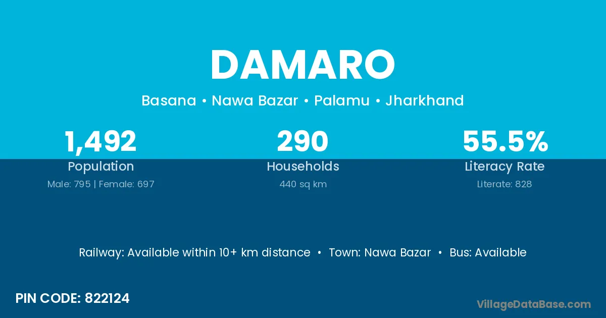 According to Census 2011 information, the village code of Damaro village is 822124.