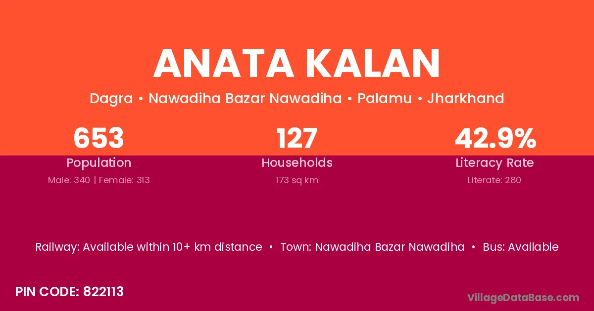 Anata Kalan village has a total population of 653 people, of which 340 are males and 313 are females.