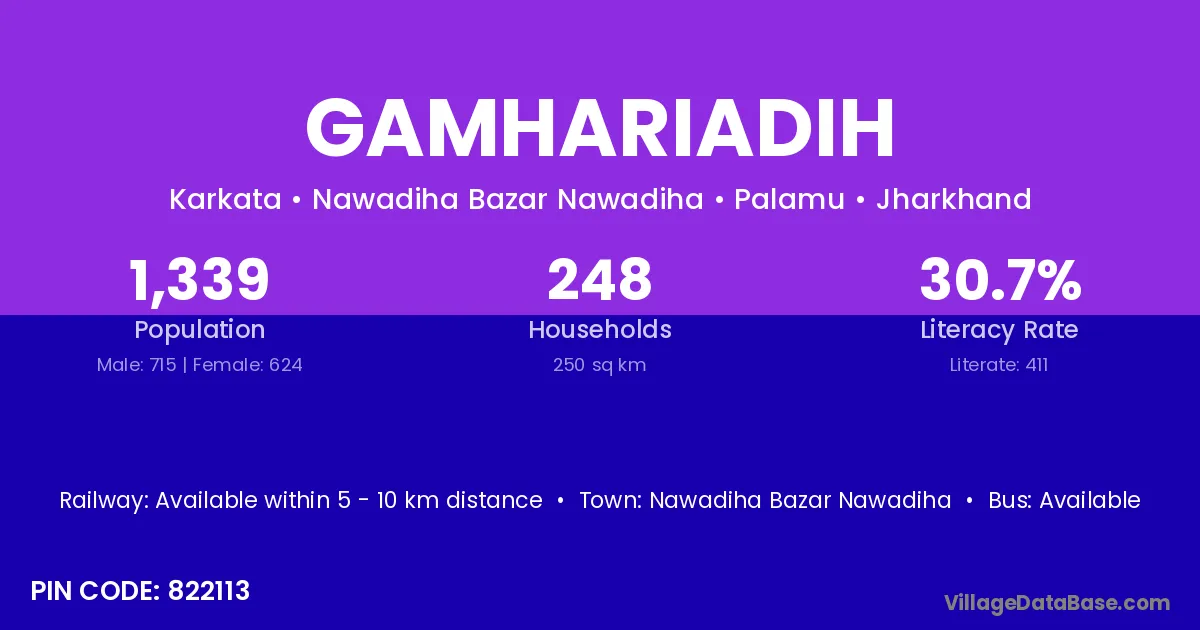 Gamhariadih village has a total population of 1,339 people, of which 715 are males and 624 are females.