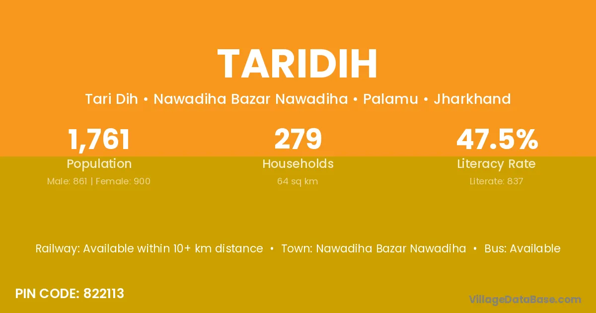 Taridih village has a total population of 1,761 people, of which 861 are males and 900 are females.