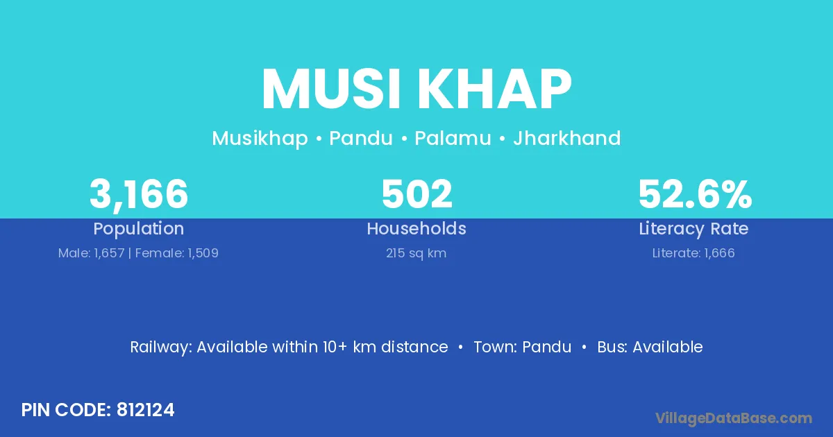 Musi Khap village has a total population of 3,166 people, of which 1,657 are males and 1,509 are females.