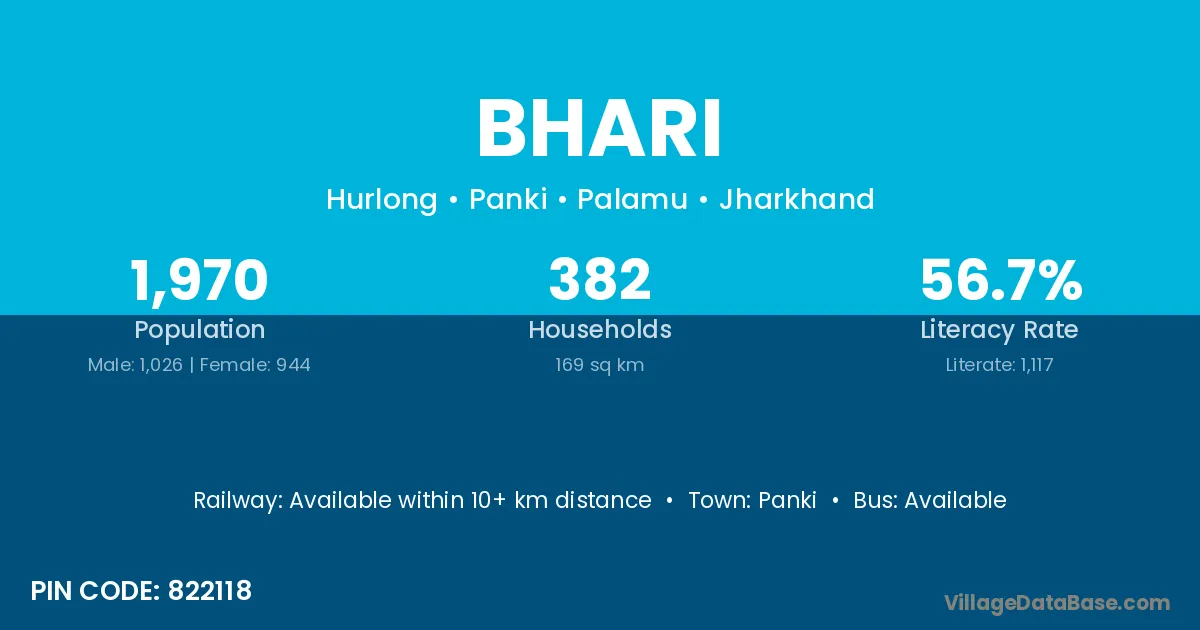 According to Census 2011 information, the village code of Bhari village is 822118.