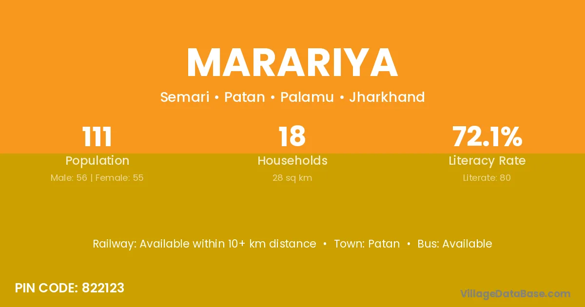 Marariya village has a total population of 111 people, of which 56 are males and 55 are females.