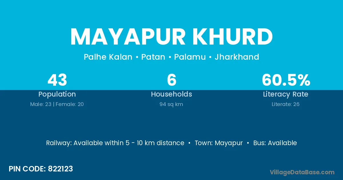 Mayapur Khurd village has a total population of 43 people, of which 23 are males and 20 are females.