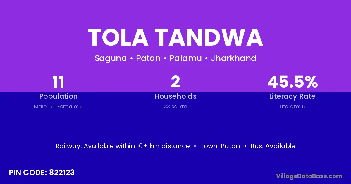 Tola Tandwa village has a total population of 11 people, of which 5 are males and 6 are females.