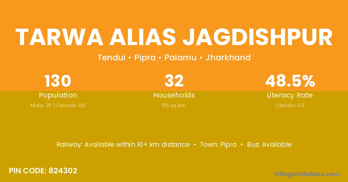 Tarwa Alias Jagdishpur village is located in the Pipra Subdivision of the Palamu district in Jharkhand .