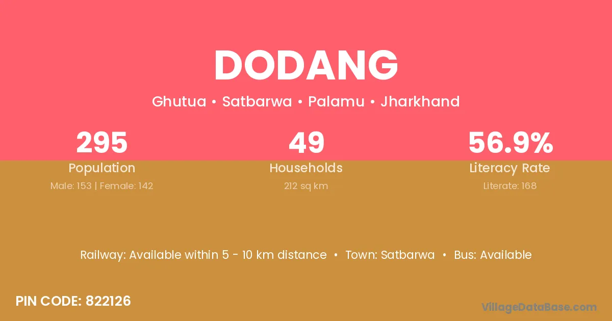 Satbarwa is the nearest town to Dodang village for major economic activities